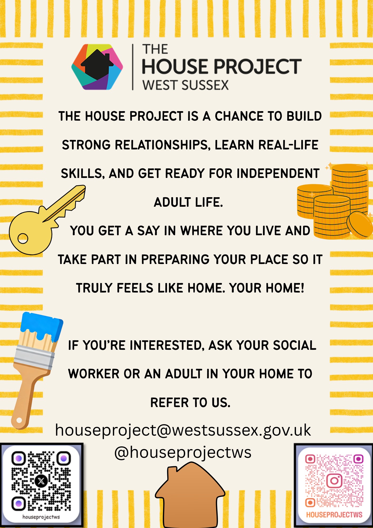 West Sussex House Project is a Local House Project (LHP). All LHP's are members of the National House Project. House Projects support young people leaving care to create their own homes and live connected and fulfilling lives.